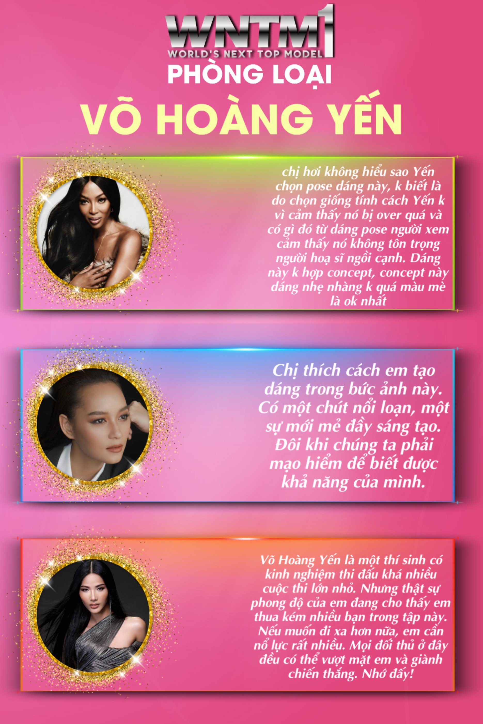 Võ Hoàng Yến: Thật sự Catriona Gray nên ở lại hơn là Coco Rocha. Tôi nghĩ Coco nên ra về trong tập tiếp theo vì cô ấy có thái độ không tốt.