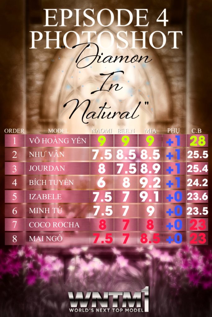 Tivi phát lên thông báo tiếp theo, màn hình hiện lên, host Naomi xuất hiện, tất cả hò hét, vô cùng phấn khích. Từ khóa tiếp theo mà host gửi đến nhà chung là : ” Diamon In Natural” . Các cô gái bất ngờ và tò mò về chủ đề photoshot lần này.